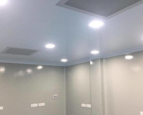 The HEPA Filter system creates an extremely homogeneous Airflow with very little turbulence. Any bacteria, Viruses or dust particles are extracted directly before the air enters the area. This means that the area is completely isolated within the surrounding room, effectively preventing any contamination by bacteria or virus-laden air. The low degree of turbulence also provides a pleasant working environment for medical personal.